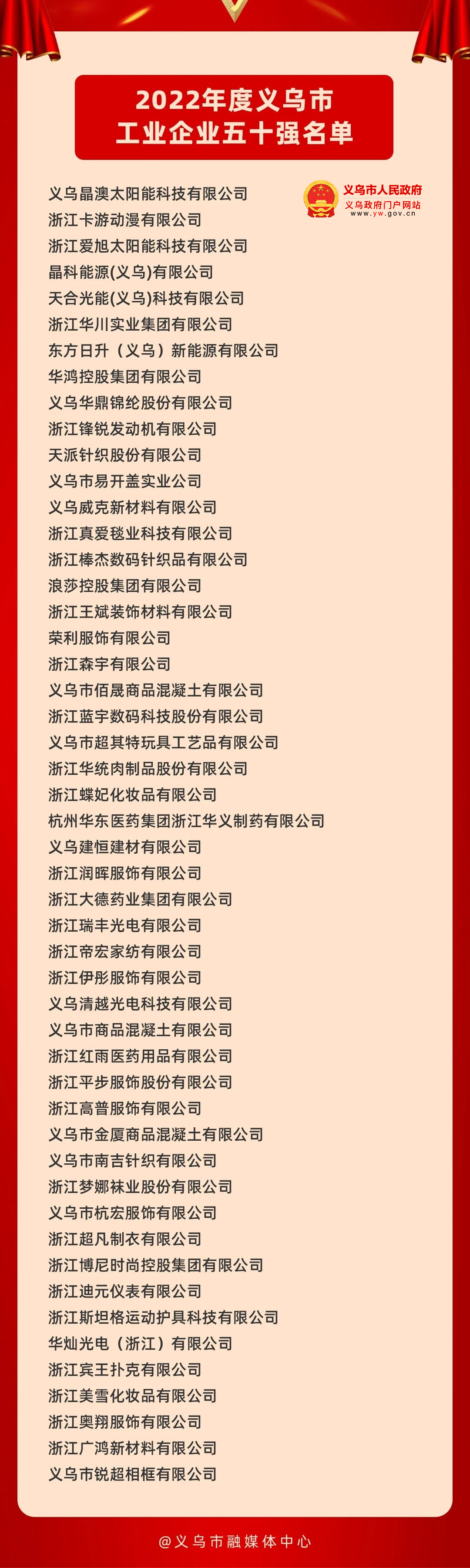 아래는 중국이우시정부에서 2022년 결산하여 발표한 이우50대기업 순위입니다.